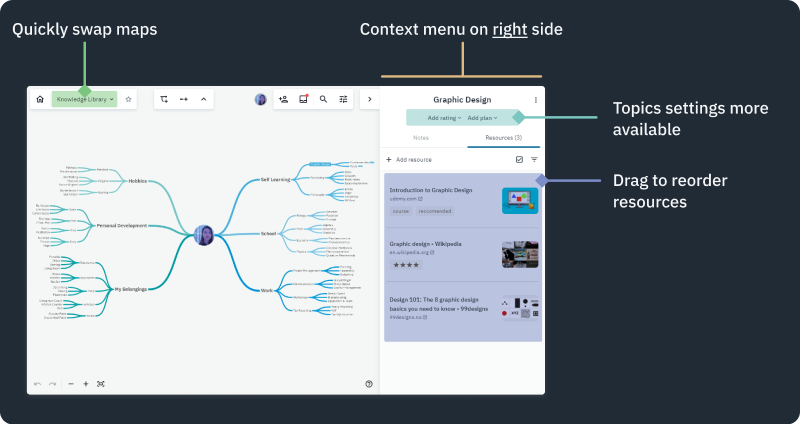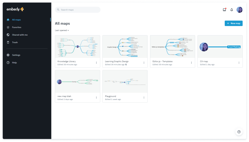 We have made a brand new dashboard to make it easier to manage your maps. Also, all maps are now equal. No more "main tree" and "sapling"; now they are all on the same level. We hope that this will make Emberly more intuitive to use and make it easier for new people to get started.